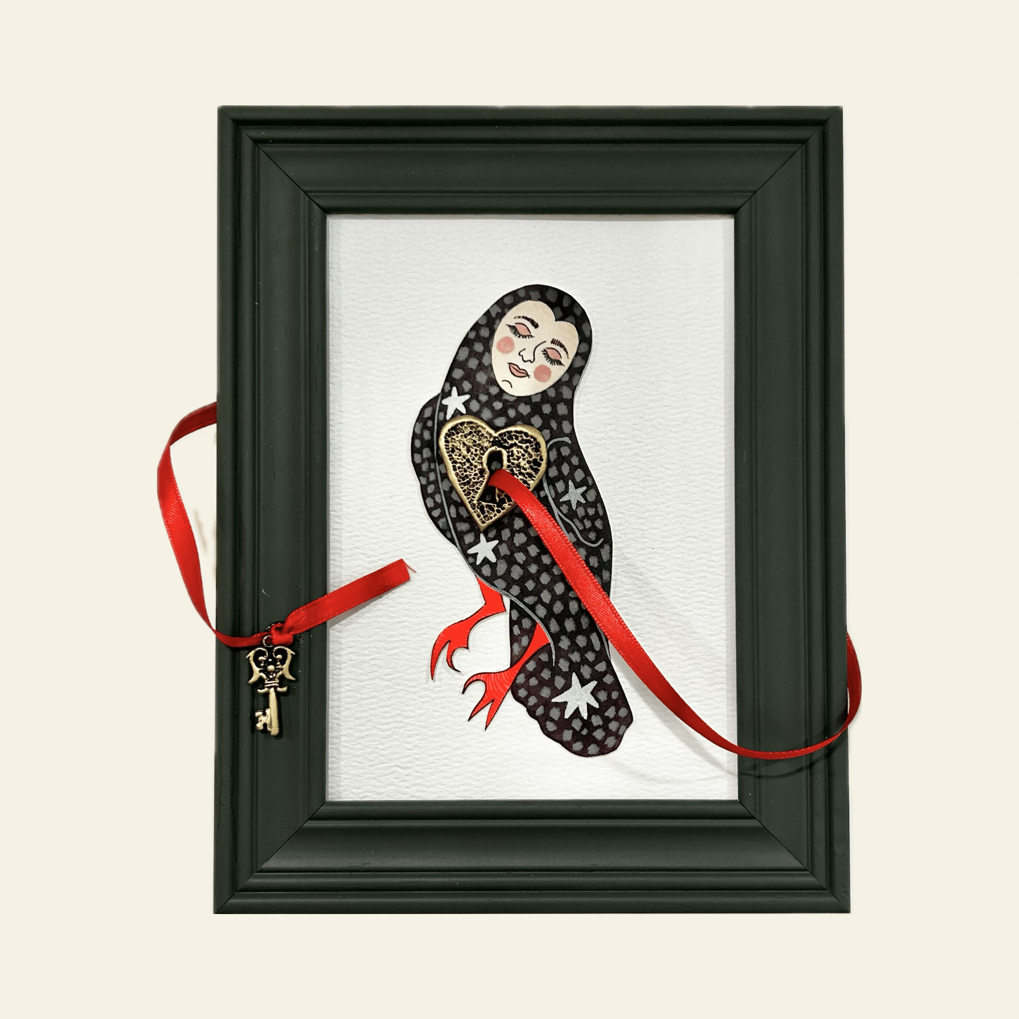 Mixed Media Illustration in Hand Painted Frame