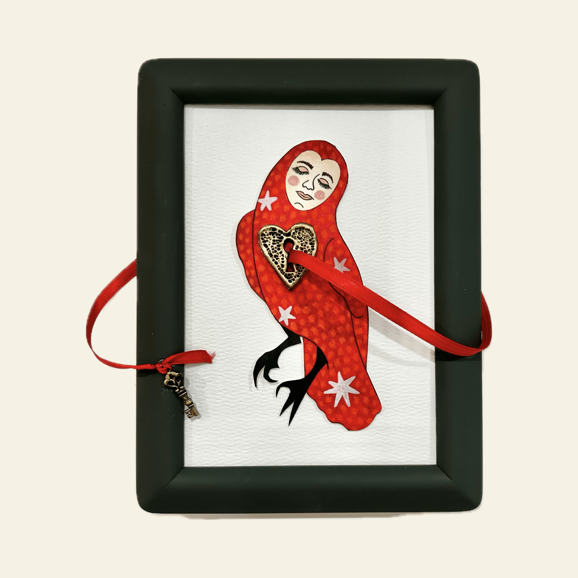 Mixed Media Illustration in Hand Painted Frame